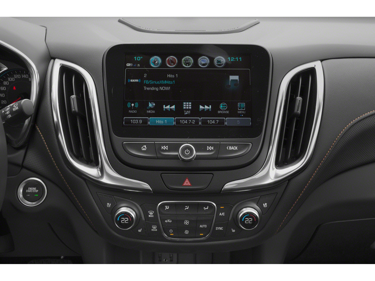 - Audio system, Chevrolet Infotainment 3 Plus system, 8" diagonal HD color touchscreen AM/FM stereo, Bluetooth® audio streaming for 2 active devices, Apple CarPlay and Android Auto capable, voice recognition, in-vehicle apps, cloud connected personalization for select infotainment and vehicle settings. Subscription required for enhanced and connected services after trial period.