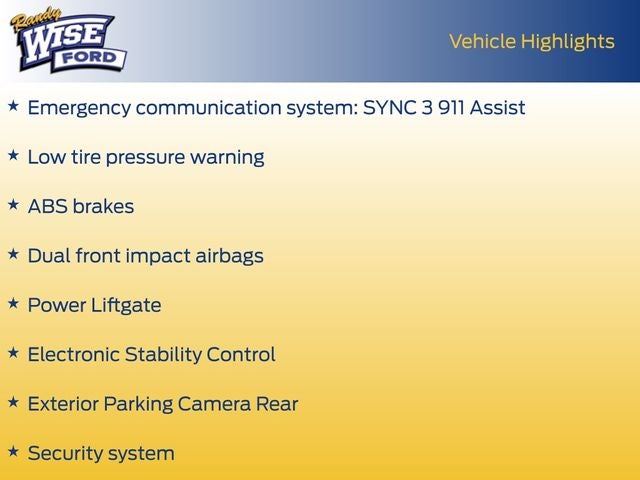 - SYNC 3 Communications & Entertainment System -inc: enhanced voice recognition, 8" LCD capacitive touchscreen in center stack w/swipe capability, AppLink, 911 Assist, Apple CarPlay, Android Auto compatibility and 2 smart-charging multimedia USB ports