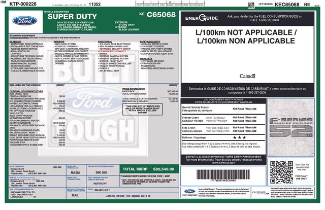 Legendary Performance: The 6.7L Power Stroke V8 Diesel delivers massive torque, paired with the reliable TorqShift 6-Speed Automatic and Electronic-Locking Axle Window Sticker.