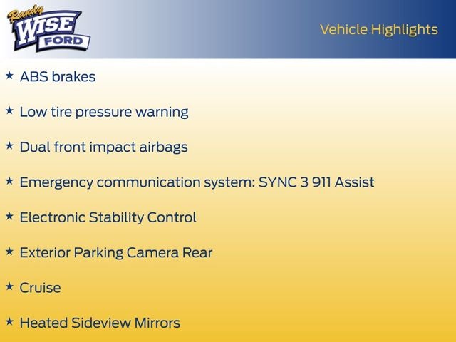 Step inside and experience the refined interior, featuring premium cloth front bucket seats, a heated steering wheel, and dual-zone electronic automatic temperature control. The SYNC 3 communications and entertainment system keeps you connected, while the rear-view camera and advanced safety features provide added peace of mind.