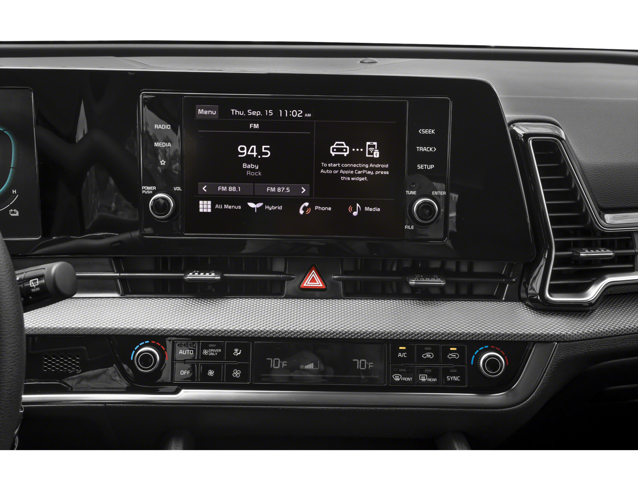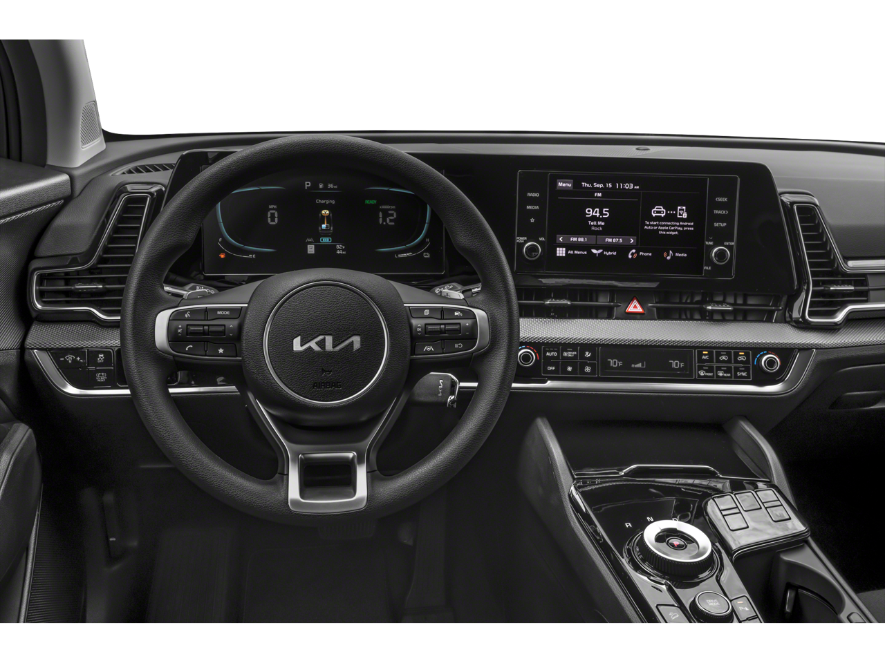 The Sportage Hybrid LX is equipped with a host of advanced features that prioritize your comfort, convenience, and safety. Enjoy the convenience of Automatic Temperature Control, Remote Keyless Entry, and Steering Wheel Mounted Audio Controls. Stay connected with the AM/FM/HD Audio System, while the Four Wheel Independent Suspension and Speed-Sensing Steering provide a smooth and responsive driving experience.
